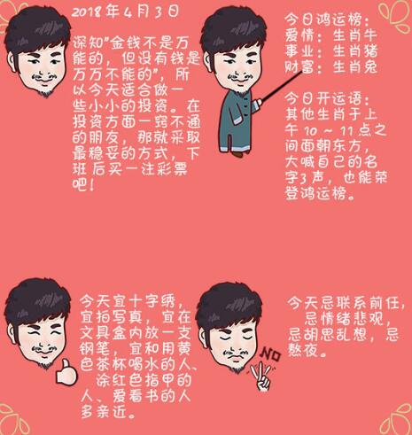 > 2018年4月3日生肖运势